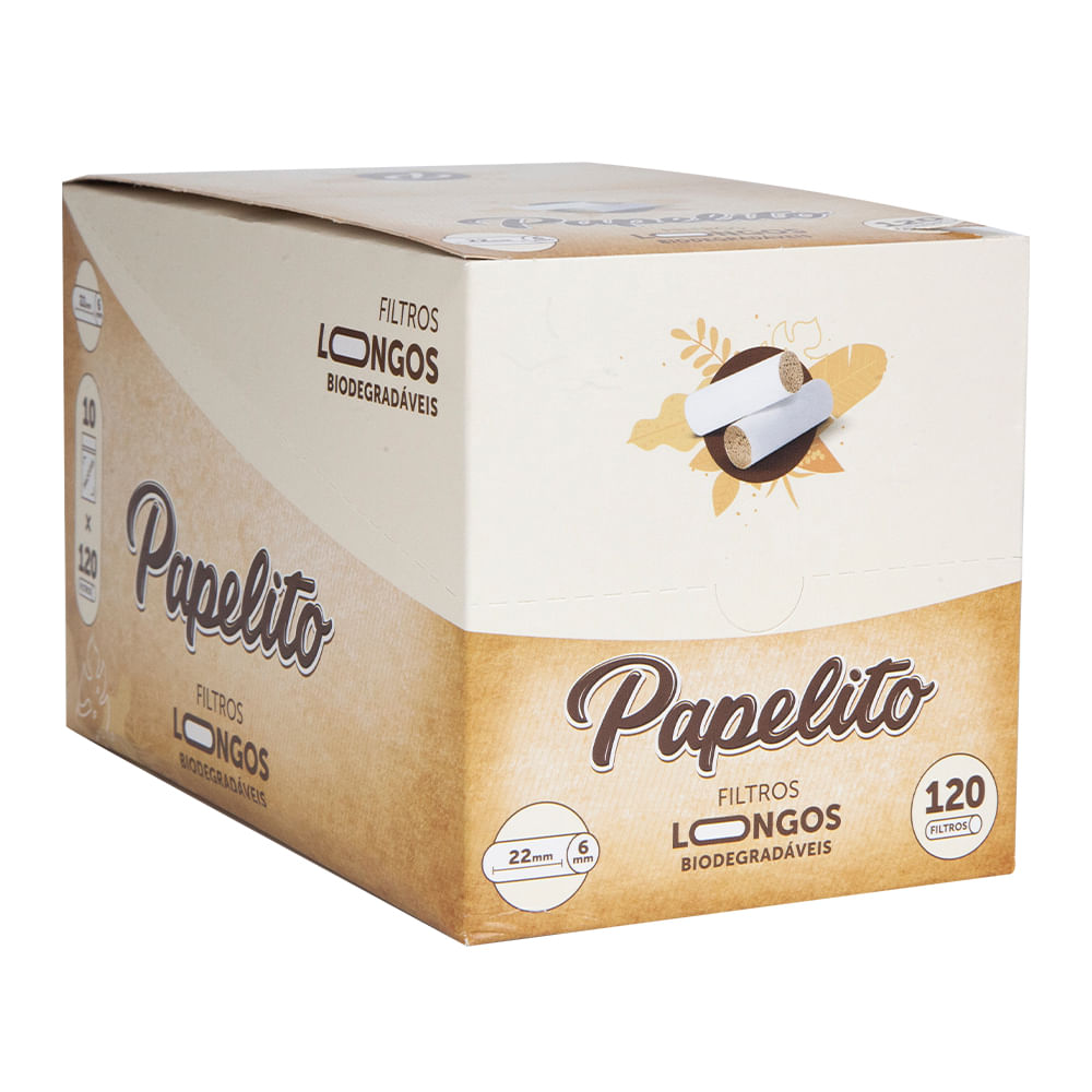 O Filtro Papelito Biodegradável Longo são produzidos com 100% da poupa de celulose, possui o tamanho de 22mm de comprimento, 6mm de diâmetro e com 120 unidades por cada 'bag'. Seu diâmetro e comprimento possibilitam enrolar cigarros longos, com firmeza e reduzindo danos, retendo o alcatrão, nicotina e resfriar a fumaça.