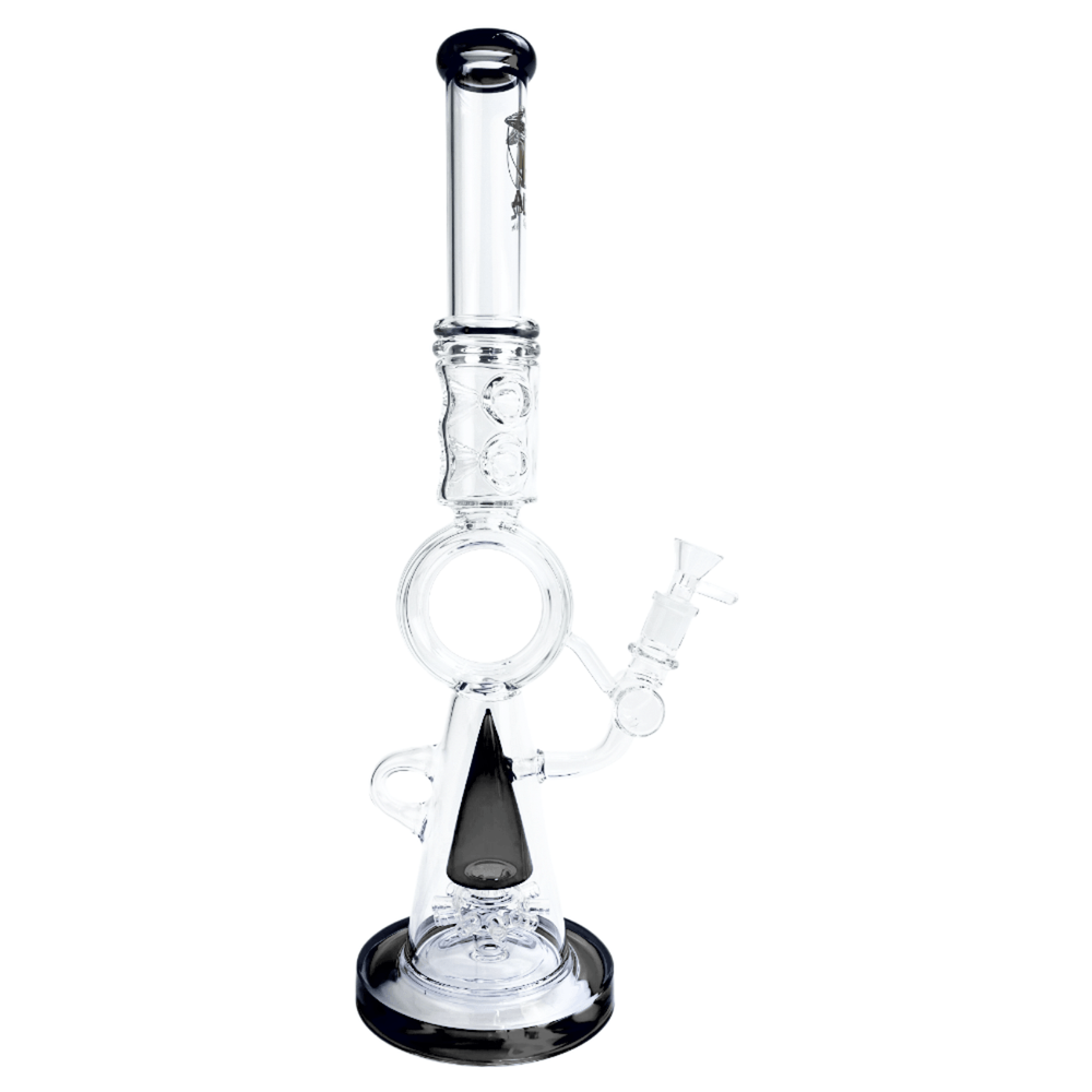 O Bong Vidro Abduzido Gold Line Grande Geometric produzido em vidro e decalque em dourado da marca. Sua estrutura conta com o sistema de travas para gelo, o que faz o bong possibilitar sessões refrescantes. Seu percolador reduz o tamanho das bolhas criadas no bong, 'filtrando' a fumaça, retendo resíduos sólitos, como resto de planta ou qualquer outro metal pesado. Ao utilizar um bong com compartimento para gelo o resfriamento da fumaça é um elemento que agregará na redução de danos. Sua cuba conta com acabamento jateado para o encaixe aderir ao corpo e 'vedar' de forma eficiente.