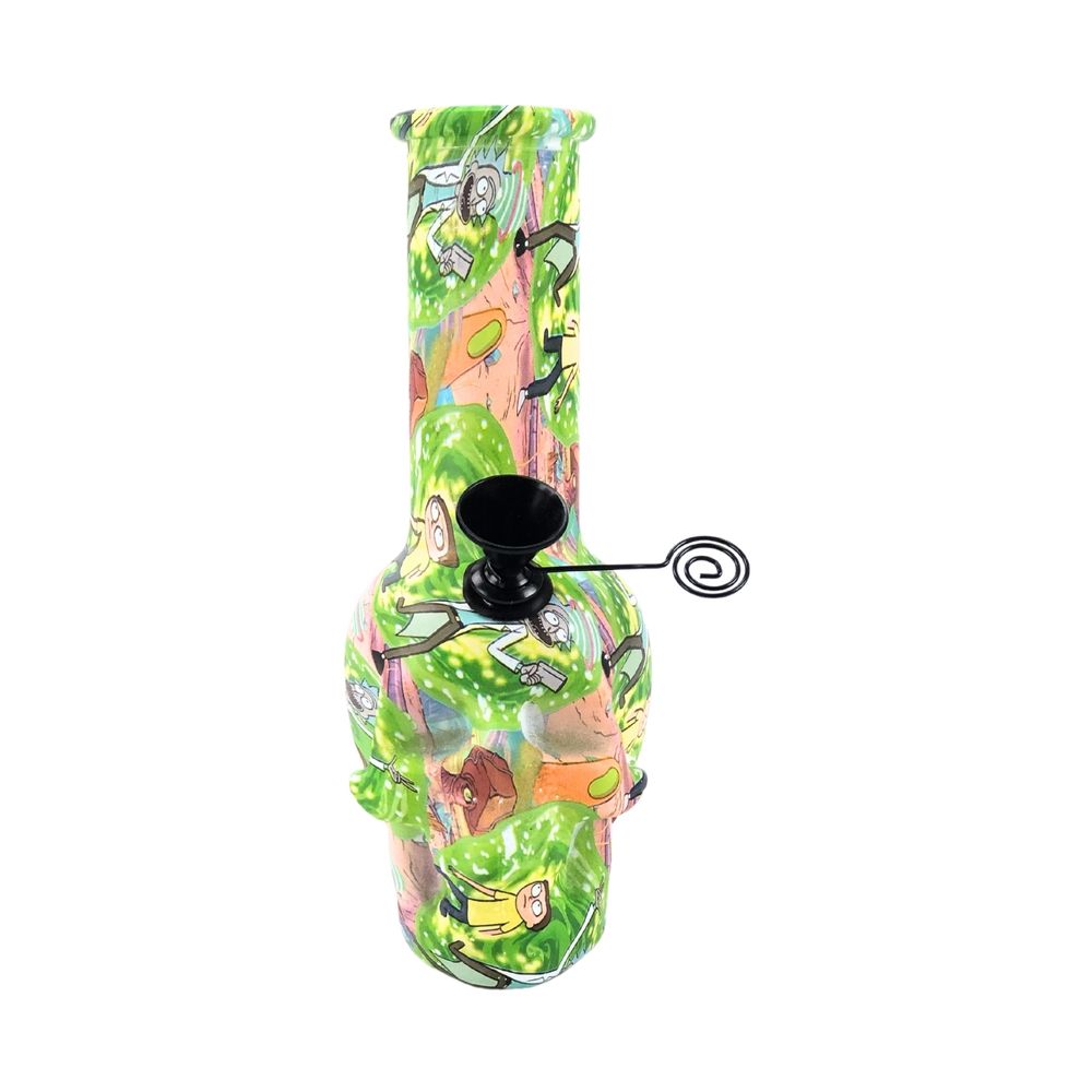 O Bong de Vidro DK Mini Skull Full Ricky and Morty altamente indicado para quem procura um produto com vídro de ótima qualidade e com custo-benefício. Downstem em alumínio, o bowl é rosqueado e acompanha tela de metal para maior praticidade. Bongs são grandes aliados à redução de danos, tendo em vista que a fumaça será resfriada através da água e os resíduos sólidos, como as cinzas, serão retidos nas água durante sua sessão.