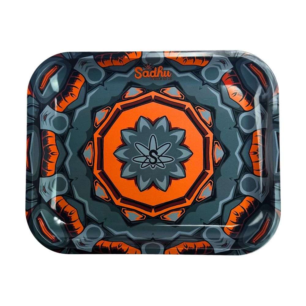 Bandeja Sadhu Grande Mandala Cinza e Laranja