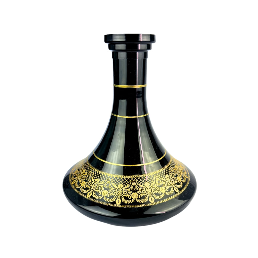 A Base Ninja Média Gim Gold é feita de vidro transparente com decalque dourado, combinando perfeitamente com a cor do alumínio anodizado do bocal. Com altura de 26,5cm, diâmetro de encaixe de 5cm e diâmetro de apoio de 12cm, oferece estabilidade e um visual premium. Seu design robusto e elegante garante segurança e estilo para sessões de narguile, sendo ideal para setups médios que exigem sofisticação e performance.